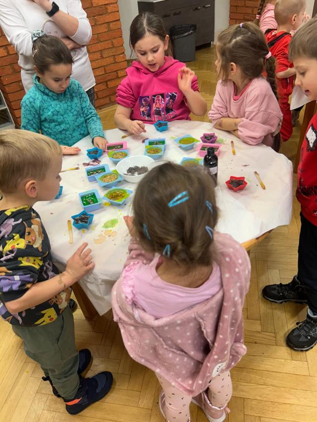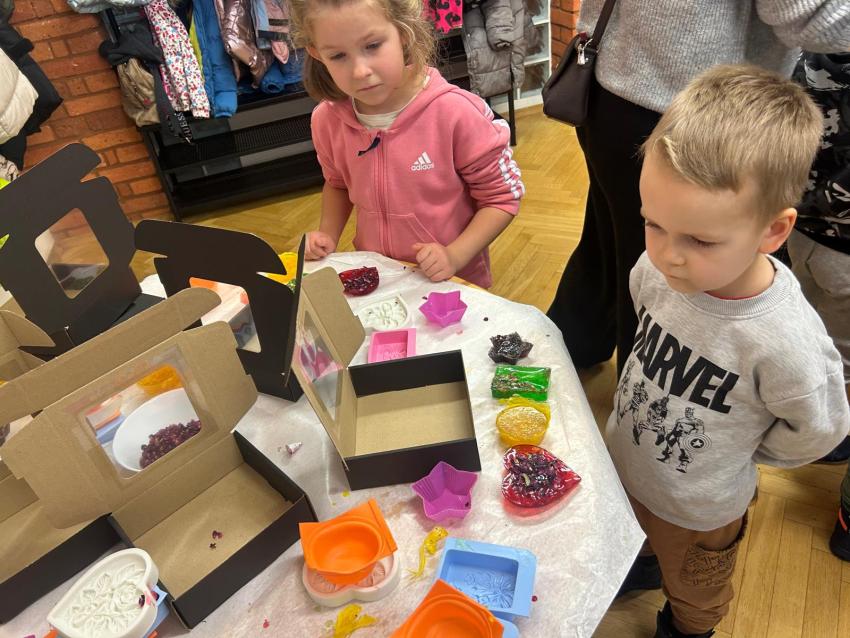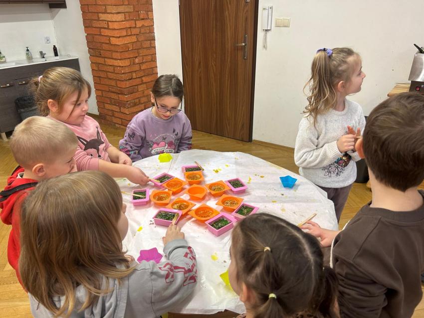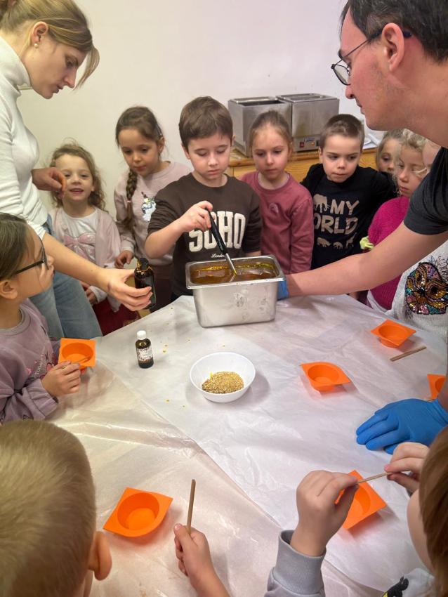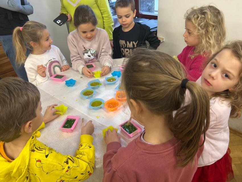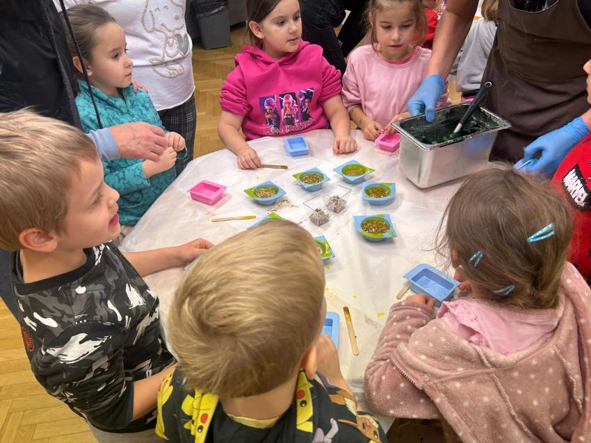 Dnia 26.11.br. dzieci z grup: III i IV pojechały na warsztaty z robienia mydełek do fabryki w Krakowie. Mydełka wyszły przepiękne i będą wspaniałym prezentem dla Babci i Dziadka w styczniu.