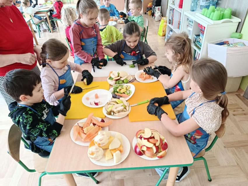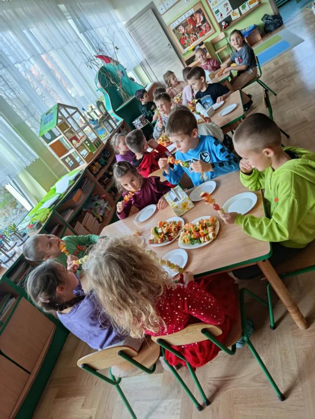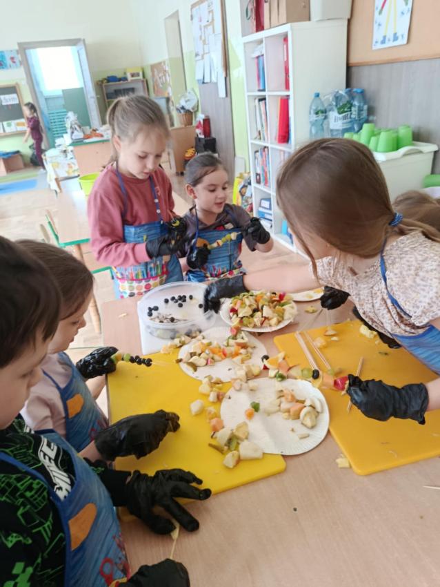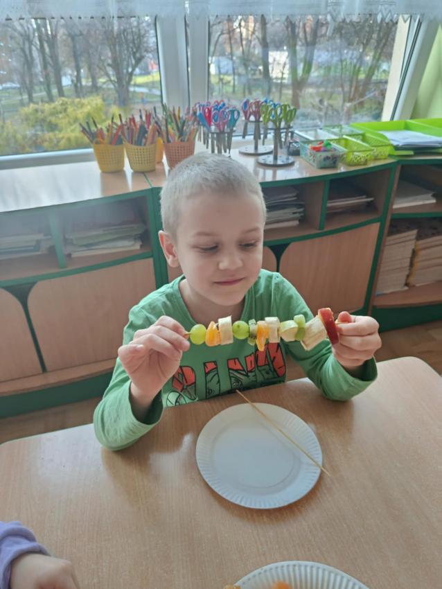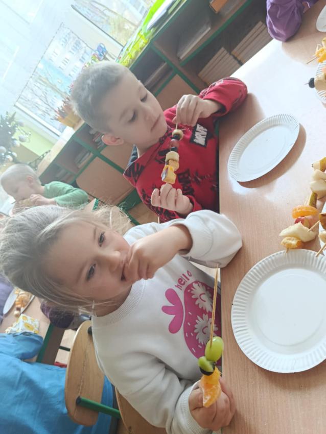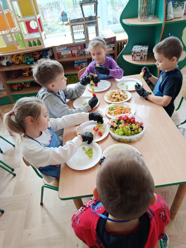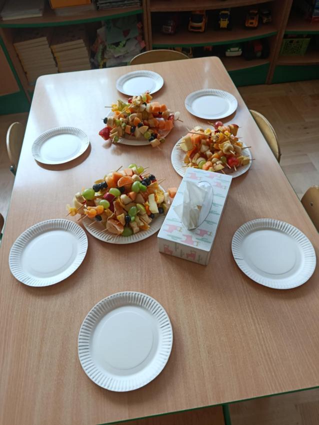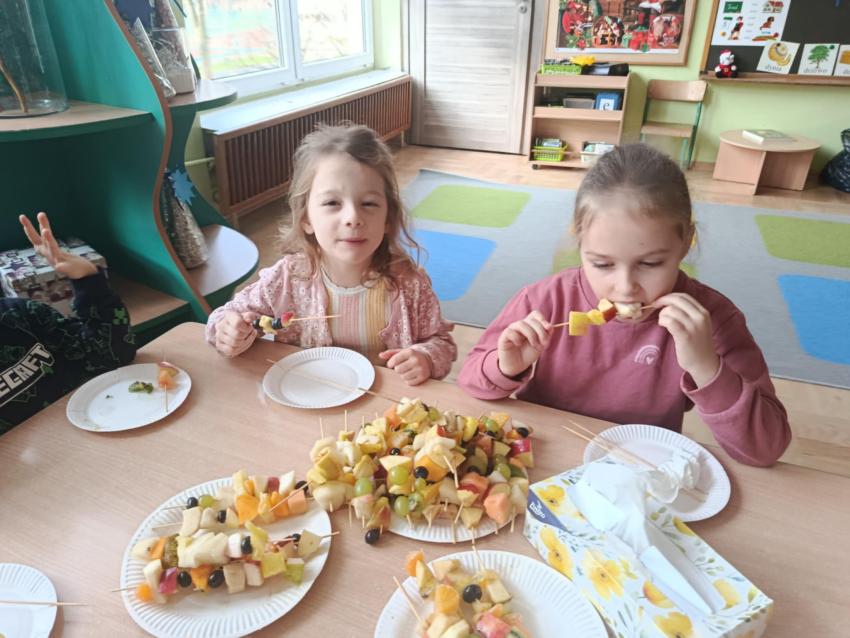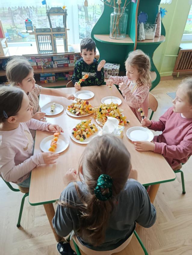 Podczas zajęć zorganizowanych przez Panią Monikę starszaki samodzielnie wykonały owocowe szaszłyki. I kto by pomyślał, że jeszcze do niedawna nie chcieliśmy jeść owoców mówiąc, że nie lubimy. Dzisiaj już wiemy, że je uwielbiamy i od dzisiaj wszystkie spożywamy.