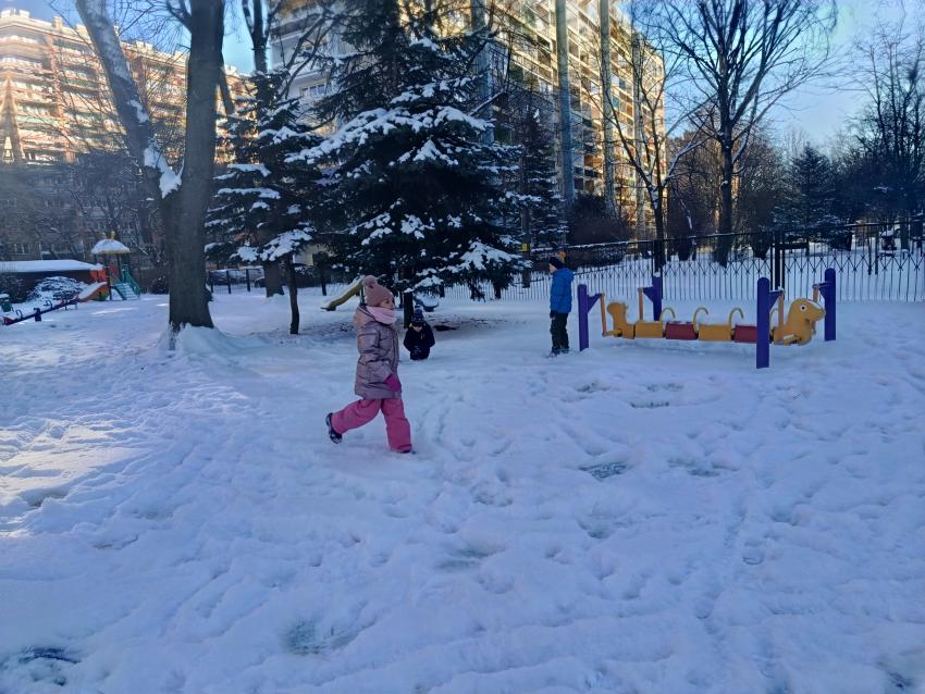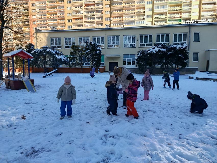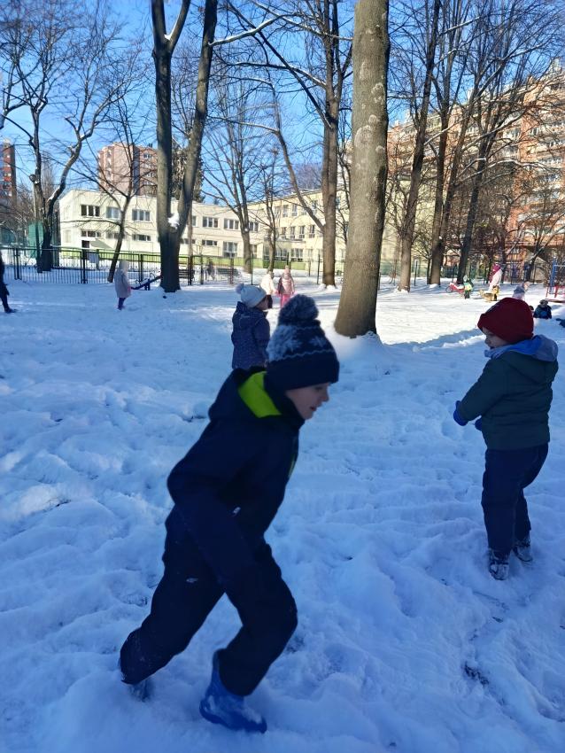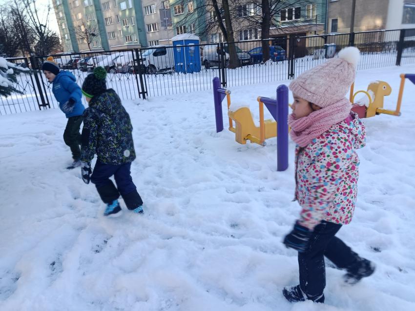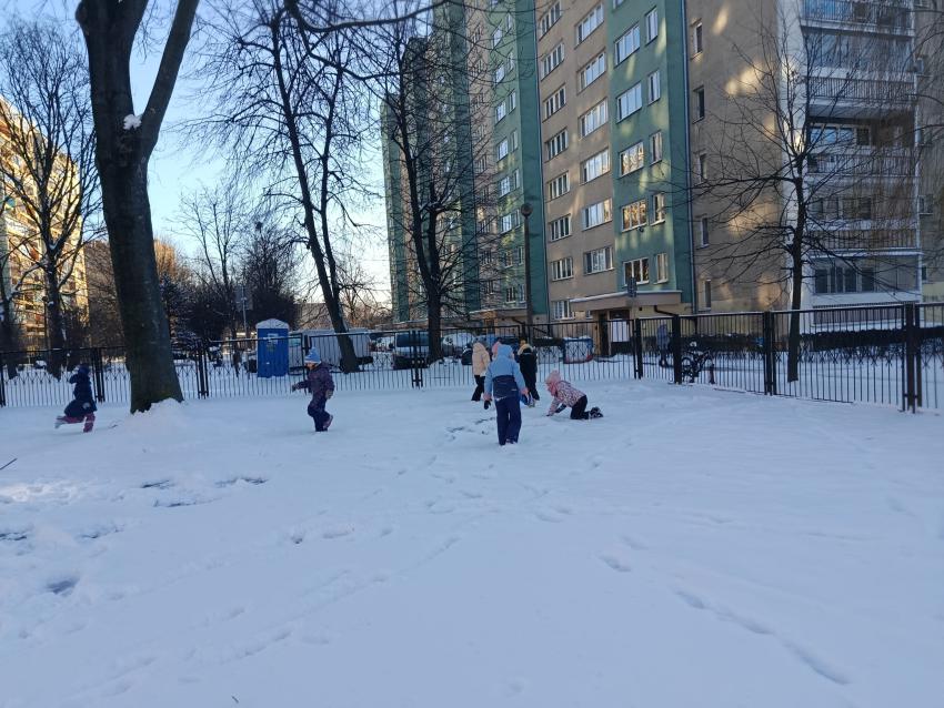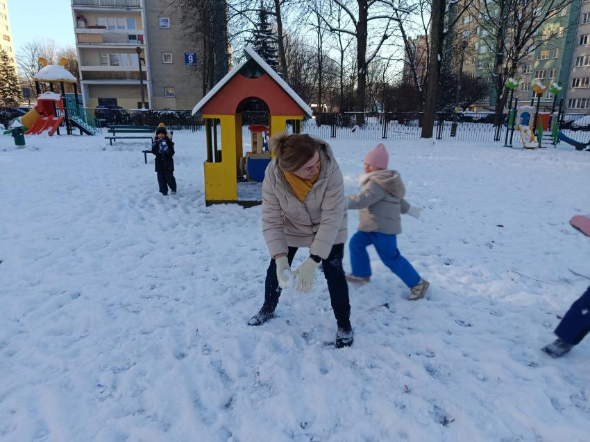 W Krakowie w końcu zima ze śniegiem! W piątek w nowym roku dzieci z naszego Przedszkola świetnie bawiły się na śniegu w naszym przedszkolnym ogródku.